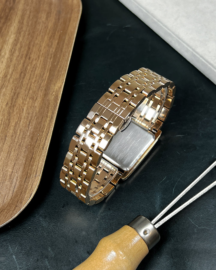Travel watch case, care guide card, polishing cloth and bracelet removal tool